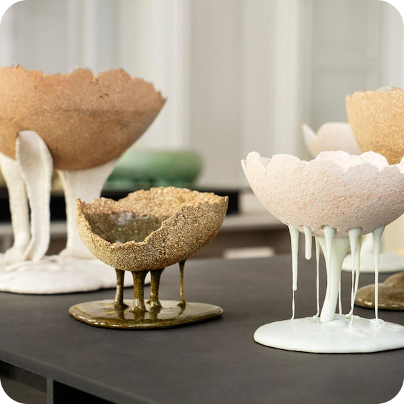PROJECT ØDELAND INVESTIGATES how ceramic and glass waste, along with granite waste from a local stone quarry on Bornholm, can be recycled into new ceramic products. The project, initiated by artists Christina Schou Christensen, Thora Finnsdottir and Signe Fensholt, is supported by the Danish Arts Foundation and Nationalbankens Jubilæumsfond, and developed in collaboration with Bofa, Bornholm’s waste-management authority.